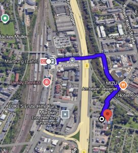 Bahn: In unmittelbarer Nähe zum Marburger Hauptbahnhof.